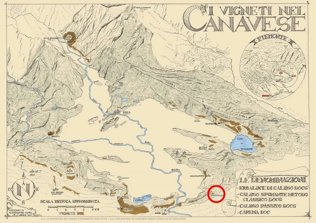 The Morainic Amphitheater of Ivrea, a geological structure of glacial origin located in the Canavese region, is the principal production area of the Erbaluce di Caluso.